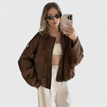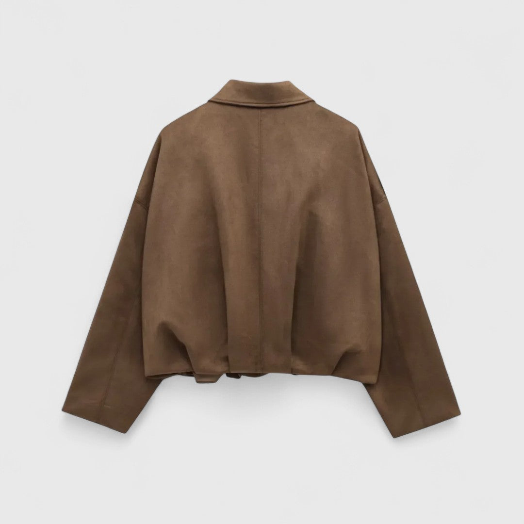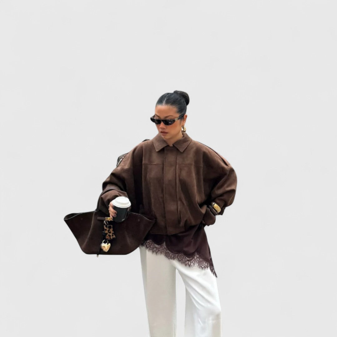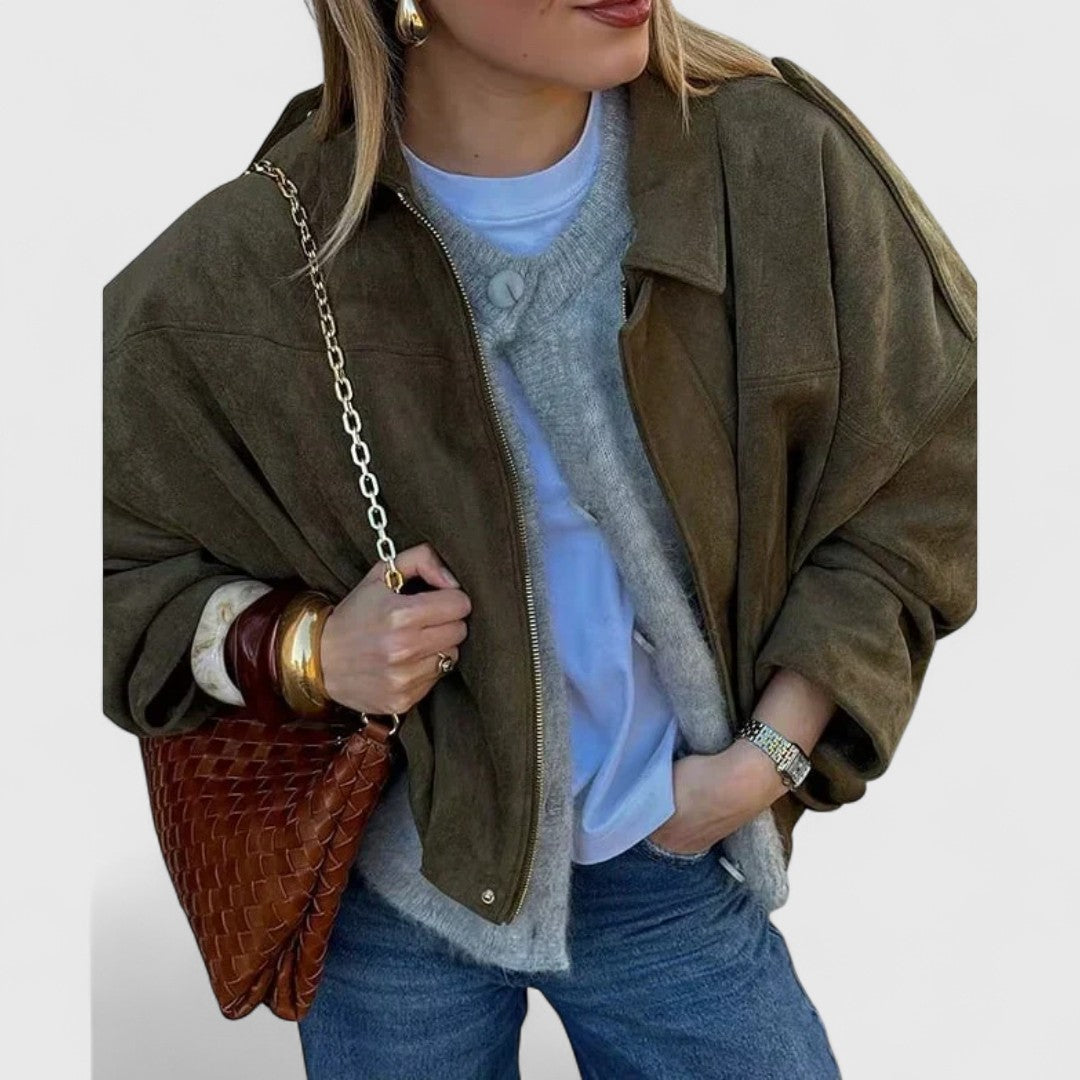 Αυτό το oversized μπουφάν με εμφάνιση σουέτ συνδυάζει άνεση και στυλ, μεταμορφώνοντας κάθε look από casual σε city-chic με ευκολία.