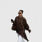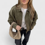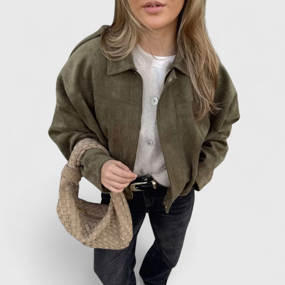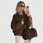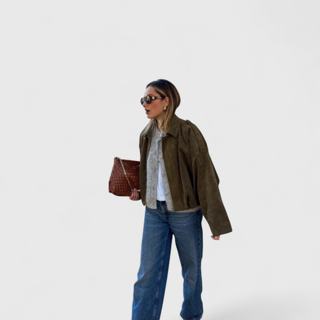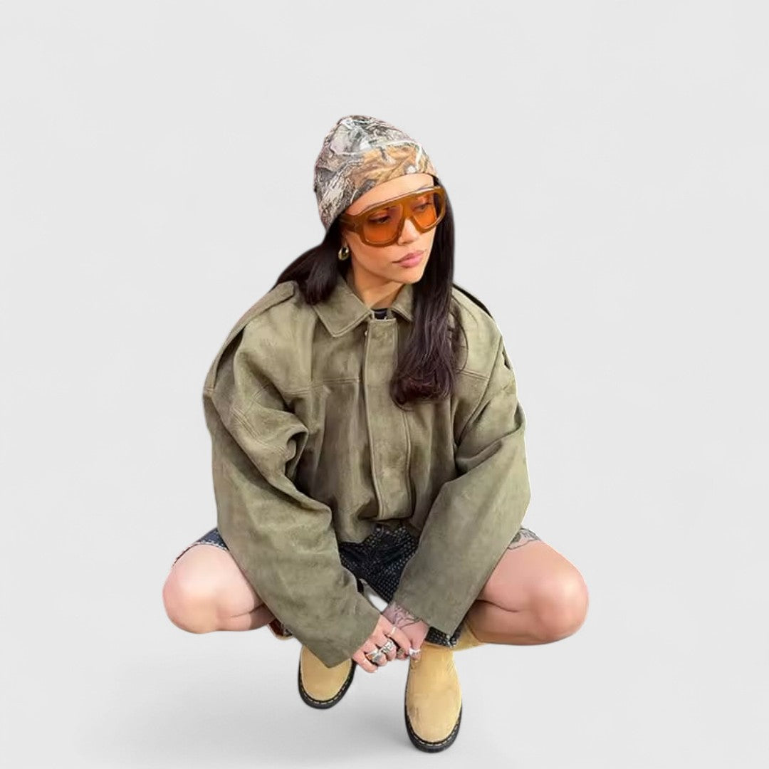 Αυτό το oversized μπουφάν με εμφάνιση σουέτ συνδυάζει άνεση και στυλ, μεταμορφώνοντας κάθε look από casual σε city-chic με ευκολία.