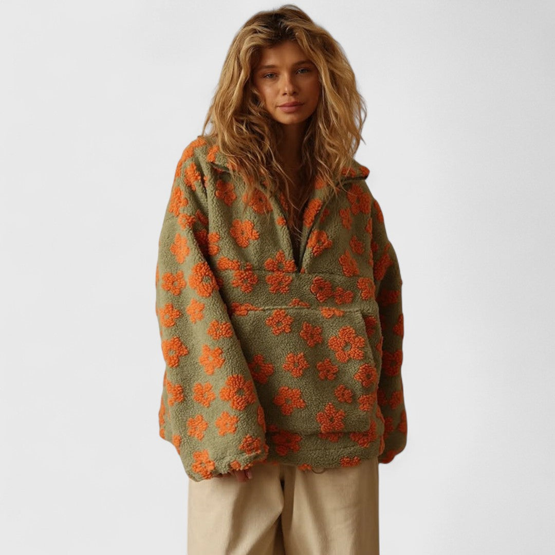 Μελπομένη - Ζακέτα φλις με μακριά μανίκια και λουλουδένιο μοτίβο για θηλυκό στυλ προσφέρει ζεστασιά και κομψότητα σε κάθε μέρα.