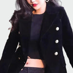 Κομψό σακάκι σε διαχρονική γραμμή με διπλό κούμπωμα που αναδεικνύει τη σιλουέτα. Η δομή του προσφέρει επαγγελματικό και εκλεπτυσμένο χαρακτήρα, ενώ μπορεί να φορεθεί εύκολα σε καθημερινές ή βραδινές εμφανίσεις. Ο minimal σχεδιασμός το καθιστά βασικό κομμάτι για κάθε γκαρνταρόμπα.
