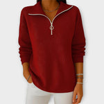 Πλεκτή Μπλούζα με Φερμουάρ και Κομψό Γιακά