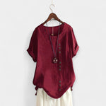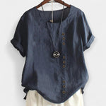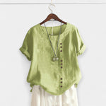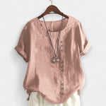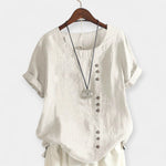 Απόλαυσε άνετες στιγμές με στυλ φορώντας αυτή την κομψή, μονόχρωμη μπλούζα με στρογγυλή λαιμόκοψη και κουμπιά. Ιδανική για κάθε περίσταση, από τις καθημερινές βόλτες στην πόλη έως πιο επίσημες εμφανίσεις, συνδυάζει ποιότητα, άνεση και διαχρονικότητα.