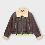 Δερμάτινο Κοντό Μπουφάν με Γούνα και Ζώνη