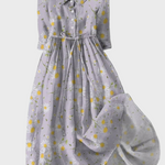 Αυτό το γοητευτικό μακρύ φόρεμα σε απαλή λιλά απόχρωση είναι η ιδανική επιλογή για μια φρέσκια και ανοιξιάτικη εμφάνιση. Το διακριτικό του σχέδιο με μαργαρίτες σε λευκό και κίτρινο χρώμα χαρίζει μια ανάλαφρη και χαρούμενη διάθεση, ενώ η ζώνη στη μέση προσφέρει άψογη εφαρμογή.