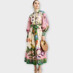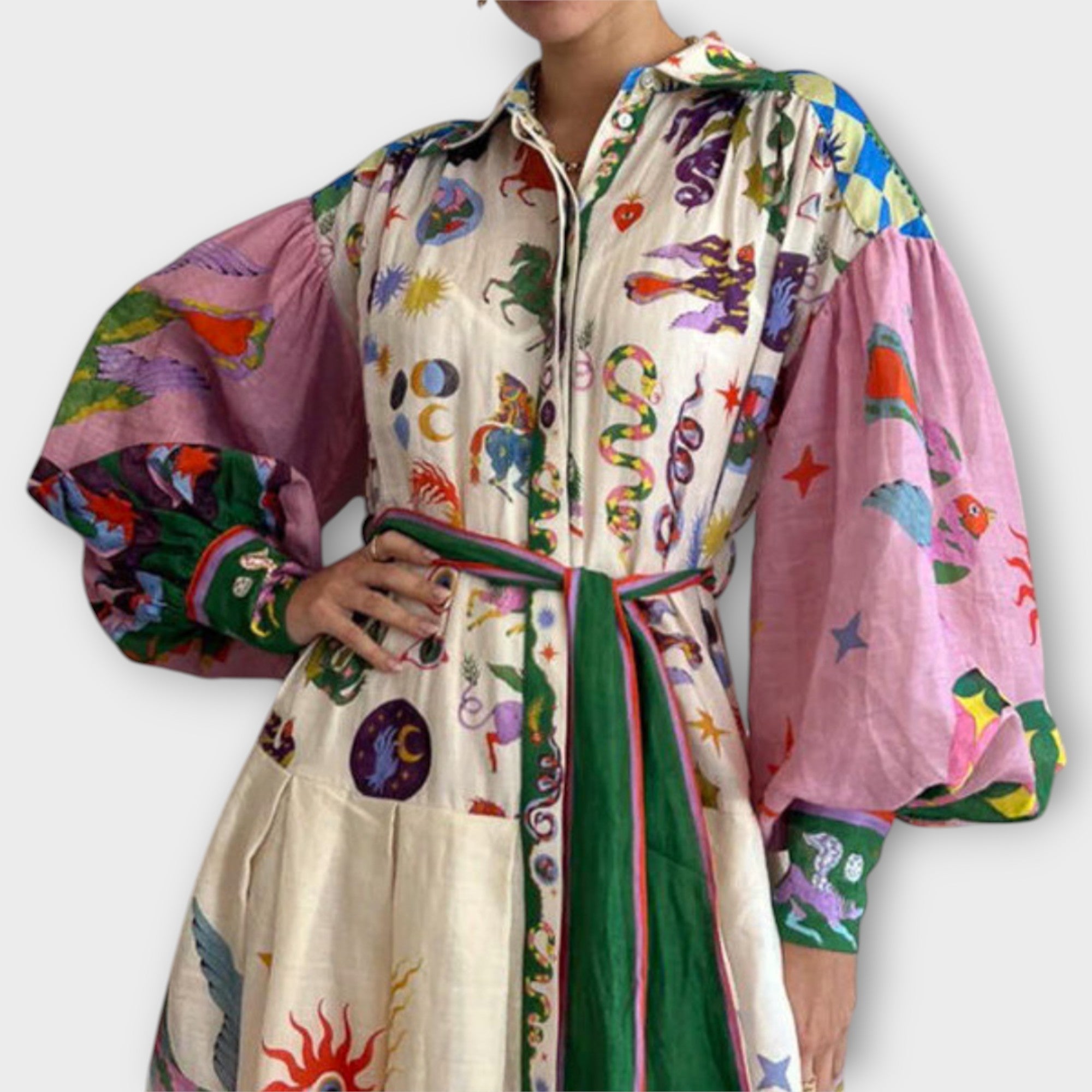 Maxi Φόρεμα Με Ζώνη & Φουσκωτά Μανίκια