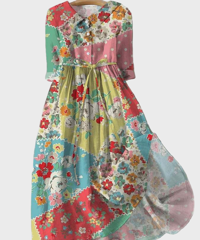 Πολύχρωμο Φλοράλ Φόρεμα σε Στυλ Patchwork