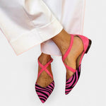 Κομψές μπαλαρίνες με λουράκια για κάθε περίσταση. Οι Αρετή συνδυάζουν statement αισθητική με καθημερινή άνεση: το ζωηρό zebra print συναντά μια τολμηρή πινελιά φούξια, ενώ τα σταυρωτά λουράκια χαρίζουν σταθερό κράτημα και θηλυκή γραμμή.