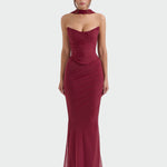 Λόρα | Μακρύ Ντραπαριστό Φόρεμα με Κολιέ-Κόρσαζ