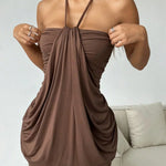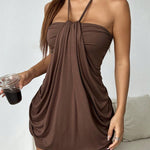 Σοκολατί Μίνι Φόρεμα Δέσιμο Λαιμού