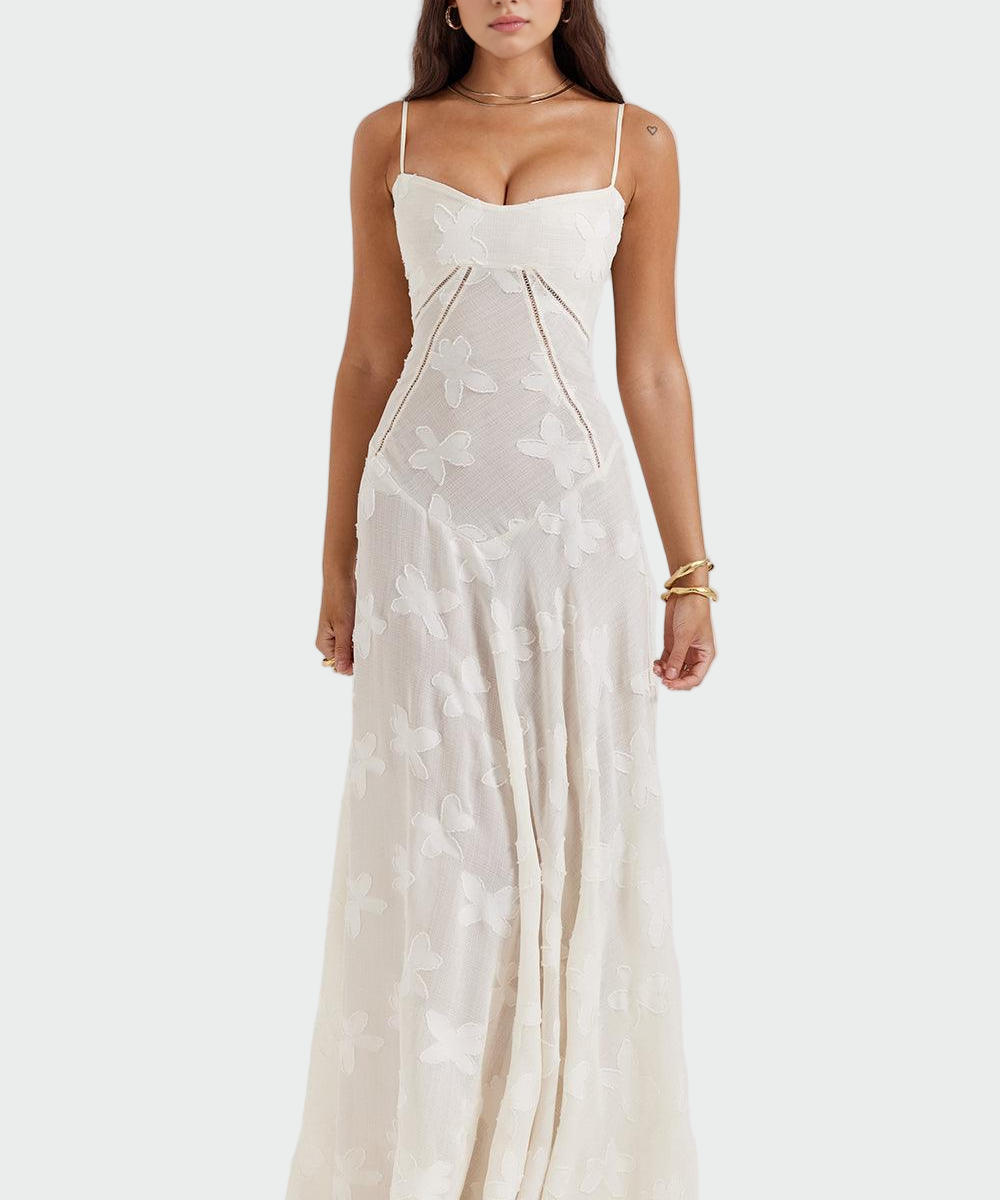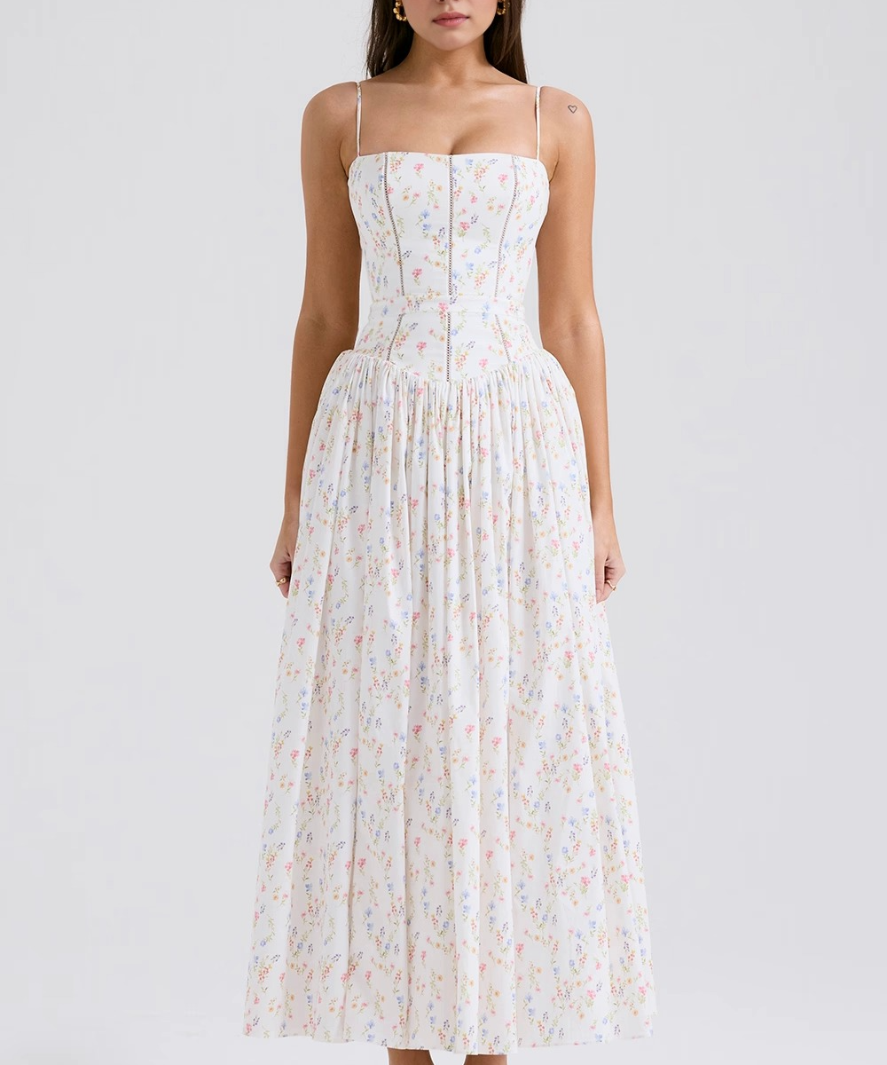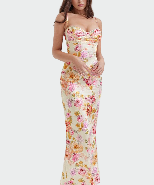 Φόρεμα Maxi με Λεπτές Τιράντες και Φλοράλ Σχέδιο