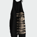 Το Καλλιτεχνική Έμπνευση είναι μια ολόσωμη φόρμα που ξεχωρίζει για το ιδιαίτερο σχέδιο με τα διακοσμητικά ψάρια. Η χαλαρή της εφαρμογή προσφέρει άνεση, ενώ το μαύρο φόντο με τα μπεζ μοτίβα δημιουργεί μια μοναδική και καλλιτεχνική εμφάνιση.