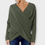 ✔️ Κομψός σχεδιασμός V-λαιμόκοψης: Ο μοντέρνος σταυρωτός V-λαιμός και η ασύμμετρη βάση προσθέτουν μια ιδιαίτερη πινελιά σε αυτό το πουλόβερ.