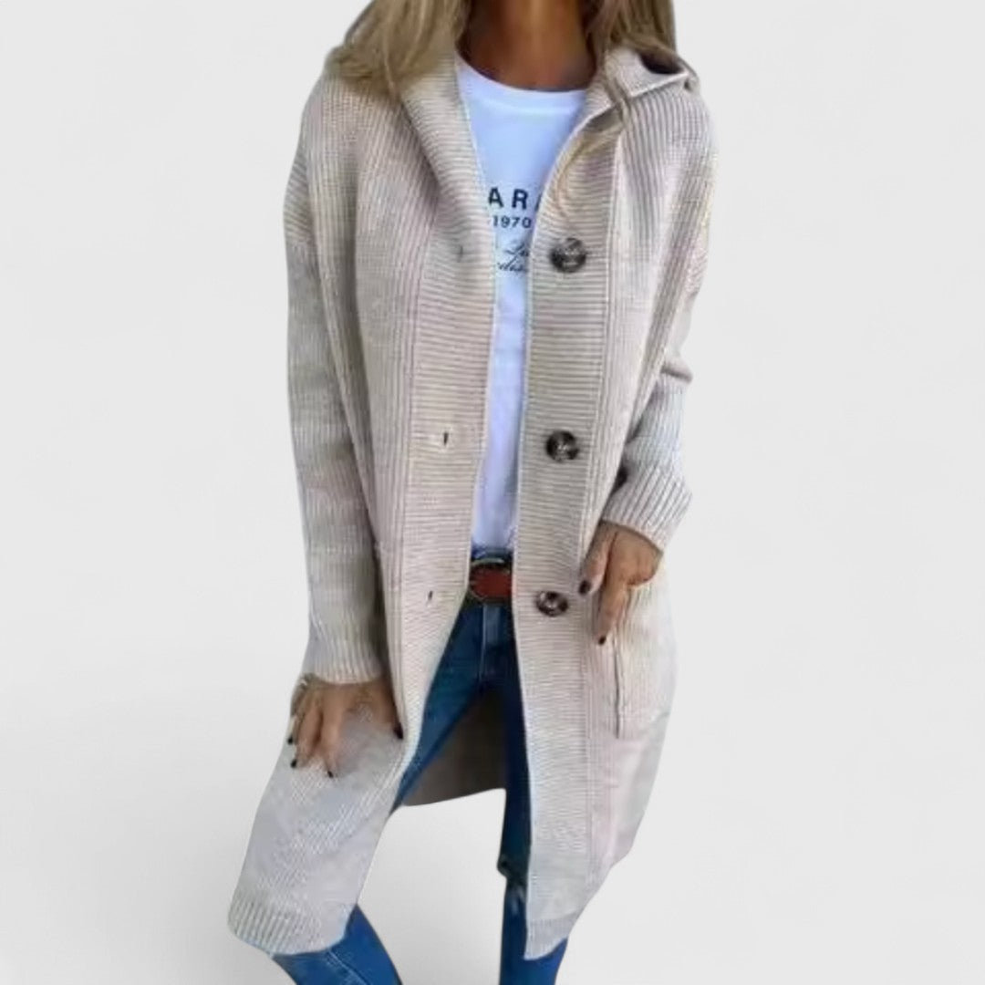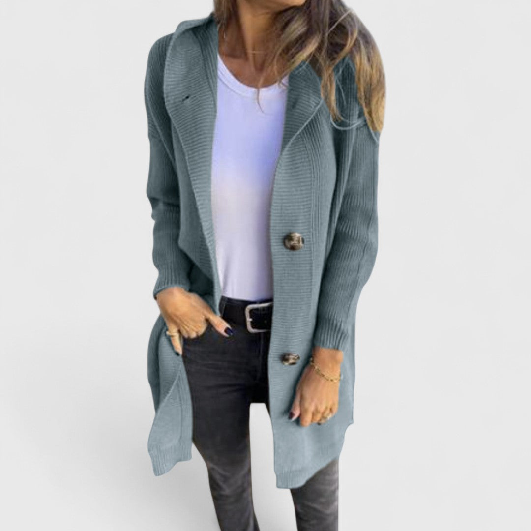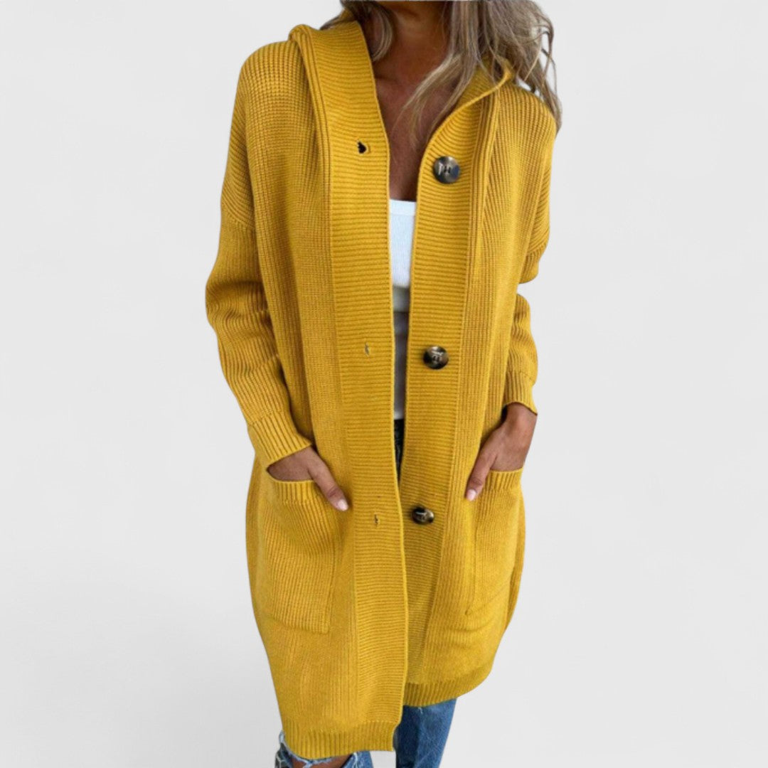 Ξανθή - Μακριά ζακέτα με απαλή υφή και στυλ, ο τέλειος συνδυασμός άνεσης και κομψότητας για κάθε περίσταση.