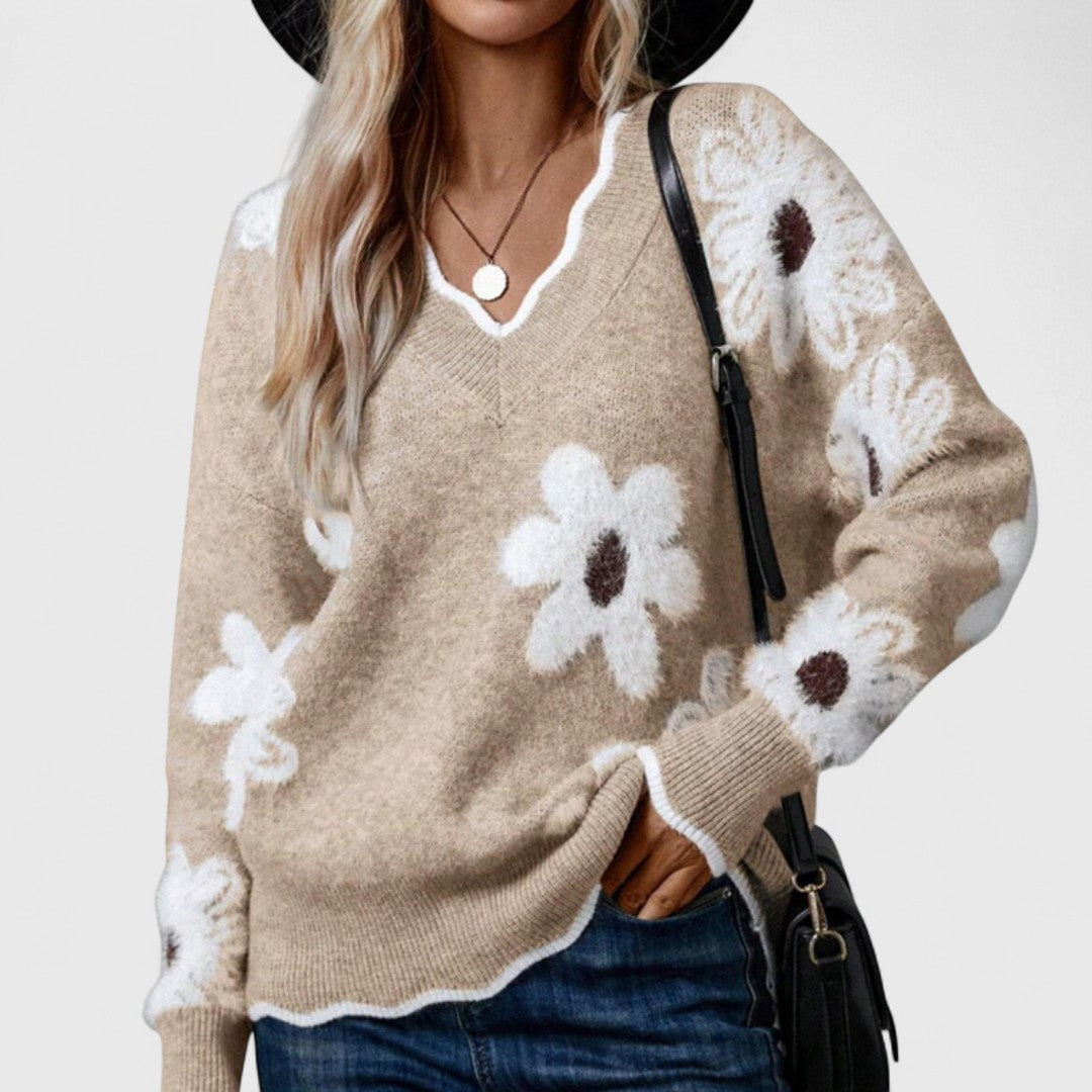 Το Ζηνοβία - Εκλεπτυσμένο πλεκτό με λουλουδάτο σχέδιο και θηλυκή γραμμή είναι το απόλυτο κομμάτι για effortless κομψότητα και ζεστασιά στις καθημερινές σας εμφανίσεις.