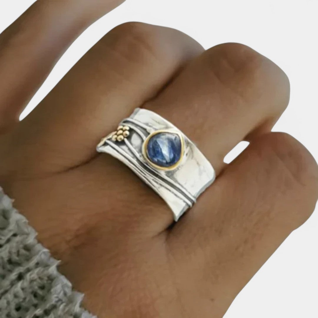 Αλεξάνδρα - Κομψό ασημένιο δαχτυλίδι vintage με μπλε ζαφείρι