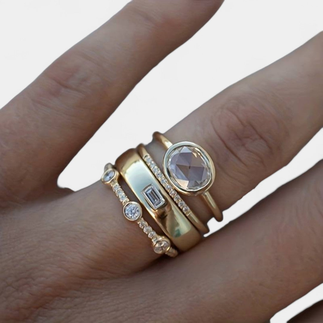 Λυδία - Σετ vintage δαχτυλιδιών σε χρυσό με ζιρκόνια