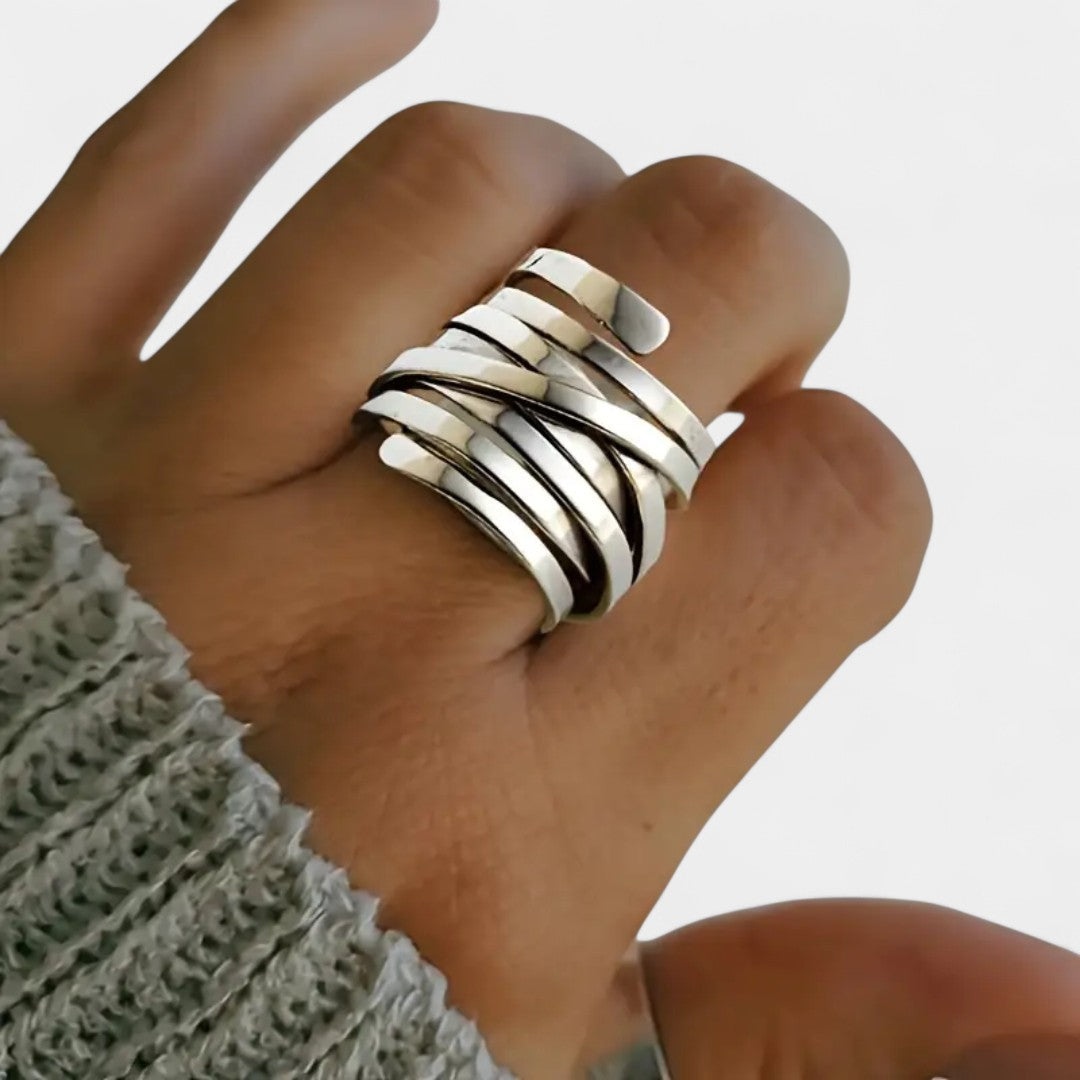 Ειρήνη - Ρετρό παχύς επιχρυσωμένος ασημένιος δακτύλιος