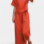 Το απόλυτο σετ για καλοκαιρινές εμφανίσεις με ανεπιτήδευτη κομψότητα. Η αέρινη κοντομάνικη μπλούζα συνδυάζεται τέλεια με το ευκολοφόρετο παντελόνι σε χαλαρή γραμμή, προσφέροντας άνεση, στυλ και δροσιά όλη μέρα. Ιδανικό για city looks, διακοπές ή χαλαρές βόλτες.