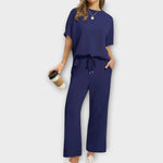Ένα σετ loungewear που συνδυάζει στυλ και άνεση, χαρίζοντας την ιδανική ισορροπία ανάμεσα στην κομψότητα και την πρακτικότητα. Ο ευέλικτος σχεδιασμός του το καθιστά ιδανικό για όλες τις περιστάσεις, από την καθημερινότητα έως πιο χαλαρές εξόδους. Ένα κομμάτι που αποπνέει minimal αισθητική και διαχρονική φινέτσα.