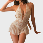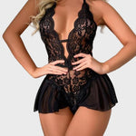 Αυτό το αισθησιακό κορμάκι εσωρούχων σε μαύρο χρώμα συνδυάζει δαντέλα και διαφάνεια για ένα απόλυτα θηλυκό και σαγηνευτικό αποτέλεσμα. Το σχέδιο με τολμηρά ανοίγματα και λεπτομέρειες από λουλούδια αναδεικνύει τη σιλουέτα, ενώ το κοντό βολάν στη βάση προσθέτει παιχνιδιάρικη κομψότητα.