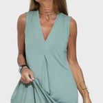 Αναδείξτε τη φυσική σας κομψότητα με αυτό το αμάνικο φόρεμα σε γήινη πράσινη απόχρωση. Ιδανικό για καθημερινές εμφανίσεις αλλά και για πιο χαλαρές εξόδους με φίλους.