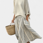 Σύνολο Casual Daisy με Oversize Μπλούζα και Midi Φούστα με Ρίγες από Λινό Μπαμπού για Ένα Κομψό και Άνετο Στυλ