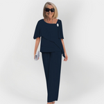 Το αγαπημένο μας σετ αποτελεί την τέλεια επιλογή για κομψές εμφανίσεις με άνεση και στυλ – ιδανικό για γυναίκες που θέλουν να νιώθουν σίγουρες σε κάθε περίσταση. Ο μοντέρνος σχεδιασμός με την ασύμμετρη μπλούζα και το ίσιο παντελόνι δημιουργεί μια διαχρονική εμφάνιση που ταιριάζει σε όλες τις ηλικίες.