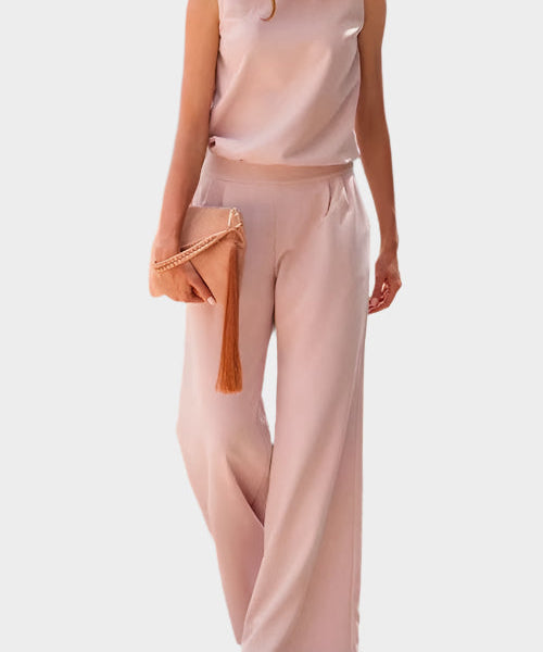 Σετ με Τοπ και Παντελόνι σε Μονόχρωμη Απόχρωση με Ντεκολτέ