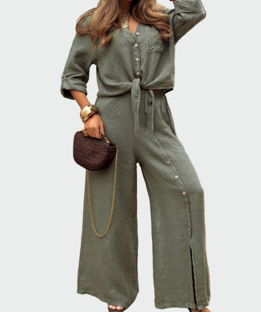 Αέρινο Σετ με Φαρδιά Παντελόνια και Ριχτή Μπλούζα