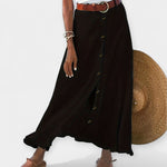 Αέρινη και κομψή, αυτή η φούστα αποπνέει διακριτική θηλυκότητα και προσφέρει ευελιξία για κάθε περίσταση. Με ελαφρώς ημιδιάφανο ύφασμα και κουμπιά μπροστά, φοριέται από το πρωί έως το βράδυ με το κατάλληλο styling.