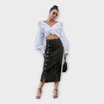 Μία φούστα που συνδυάζει κομψότητα και πρακτικότητα, προσφέροντας την τέλεια τελική πινελιά σε κάθε εμφάνιση. Ο ευέλικτος σχεδιασμός της την καθιστά ιδανική για όλες τις περιστάσεις, από casual έως πιο κομψές. Με minimal αισθητική και άνετη εφαρμογή, αποτελεί βασικό κομμάτι για κάθε γκαρνταρόμπα.