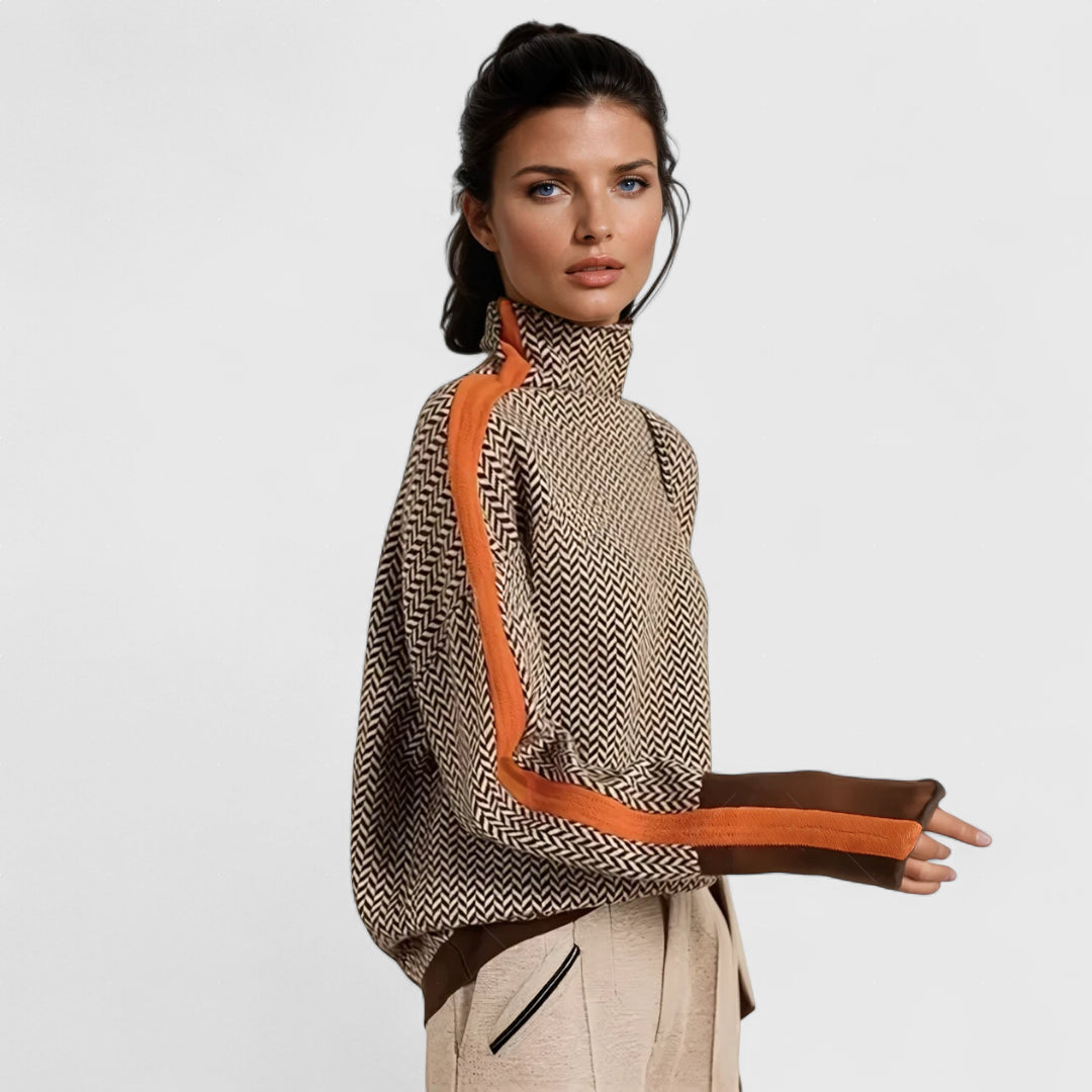 Αριστονίκη - Πουλόβερ με ψηλό γιακά και κομψές αντιθέσεις ριγών