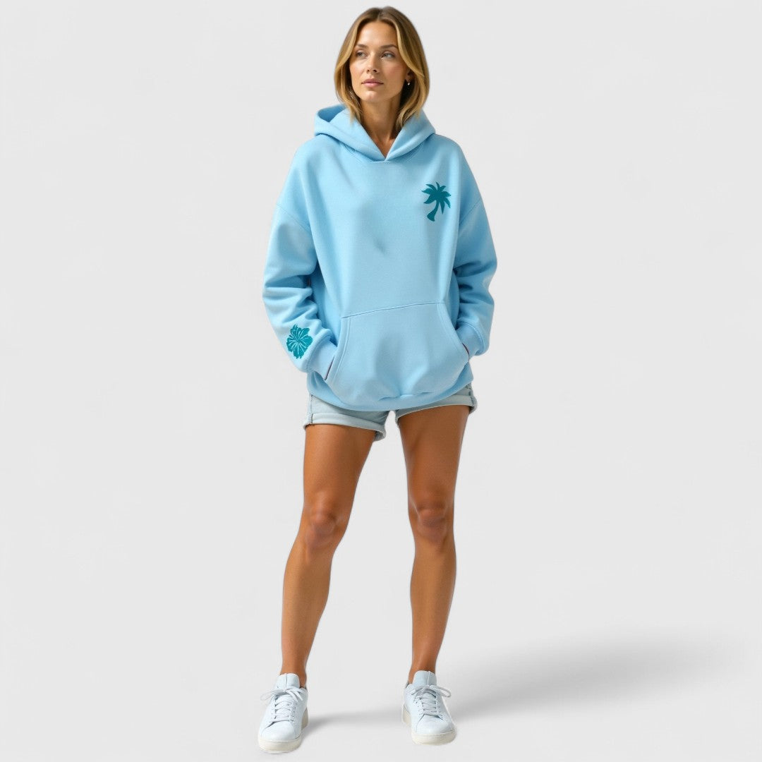 Κωνσταντίνα-Μαρία - Άνετη ζακέτα με κουκούλα και μοντέρνο στάμπα κειμένου