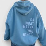 Η Κωνσταντίνα-Μαρία - Άνετη ζακέτα με κουκούλα και μοντέρνο στάμπα κειμένου σηματοδοτεί την απόλυτη άνεση και φινέτσα για κάθε casual εξόρμηση.