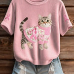 Σε απαλό ροζ τόνο, αυτό το κομμάτι συνδυάζει ζεστασιά και στυλ με μια τρυφερή πινελιά. Ο πρωταγωνιστής είναι ένα συμπαθητικό σκυλάκι με πουλόβερ και την εμβληματική ροζ κορδέλα σε 3D, σύμβολο ελπίδας και δύναμης. Ο λεπτός και γυναικείος σχεδιασμός του το καθιστά ιδανικό ρούχο για κάθε περίσταση, προσφέροντας άνεση χωρίς να χάνει την κομψότητα ή την σημασία του.