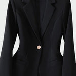 Ένα διαχρονικό σακάκι με κομψή εφαρμογή που αναδεικνύει τη θηλυκότητα και το στυλ. Το μονό κουμπί στο μπροστινό μέρος προσθέτει λεπτότητα, ενώ οι τσέπες σε καθαρές γραμμές ενισχύουν τον μινιμαλιστικό χαρακτήρα του. Ιδανικό για επαγγελματικές εμφανίσεις αλλά και για κομψές βραδινές εξόδους.