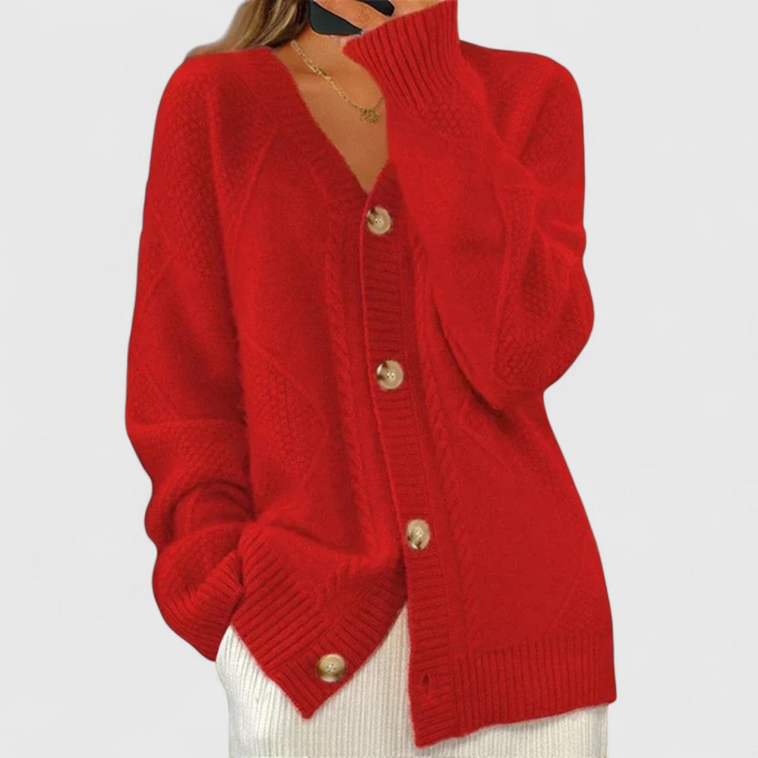Η Διονυσία, η πλεκτή ζακέτα με ανάγλυφη υφή, φέρνει ζεστή κομψότητα και άνεση σε κάθε στιγμή.