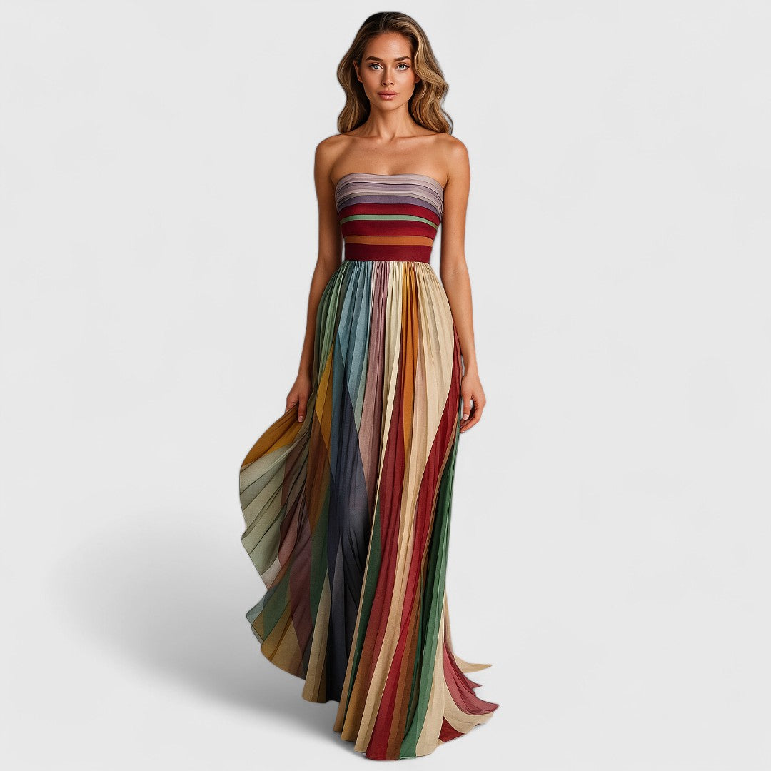 Γλυκερία - Μακρύ φθινοπωρινό φόρεμα με ζωηρά χρώματα και αέρινη εφαρμογή
