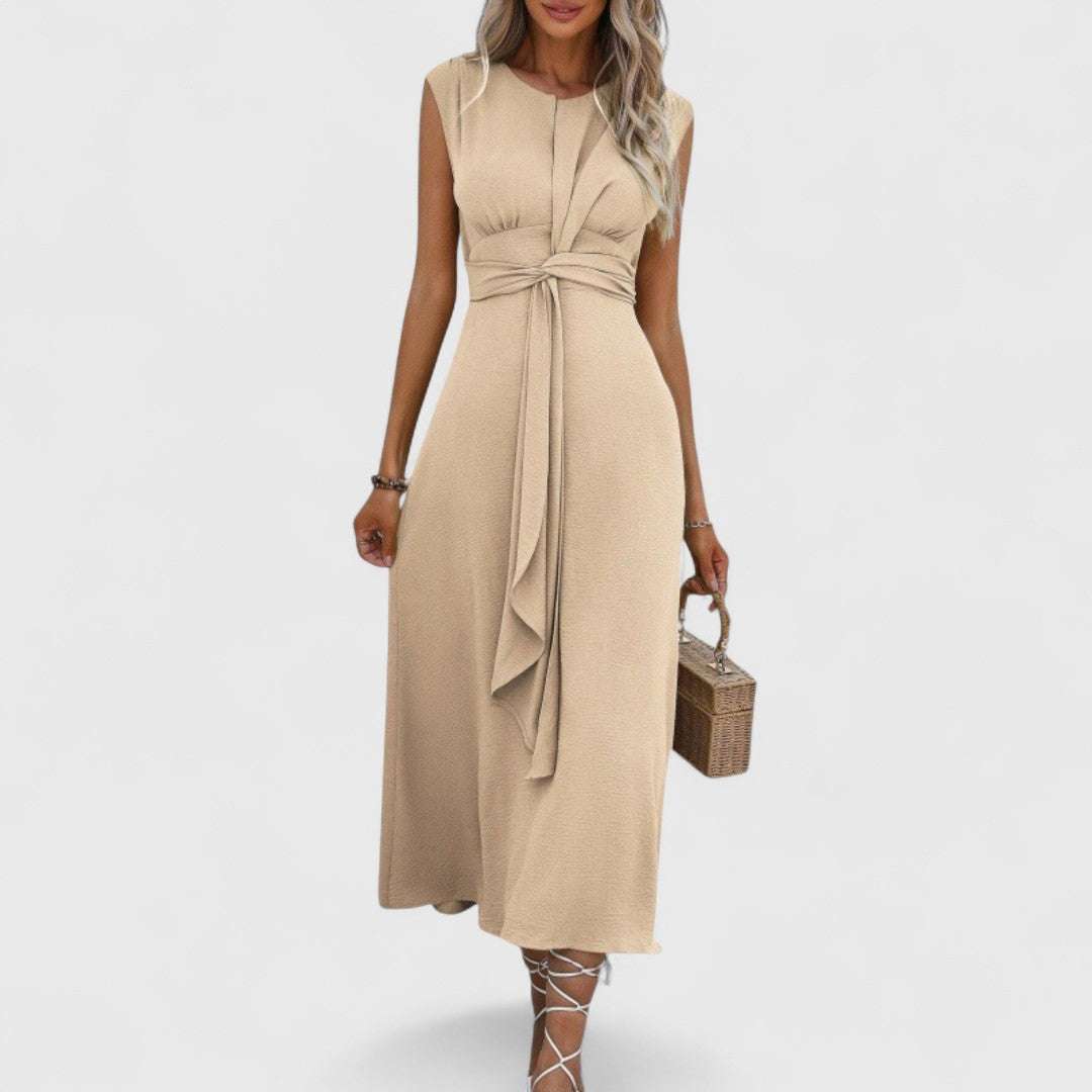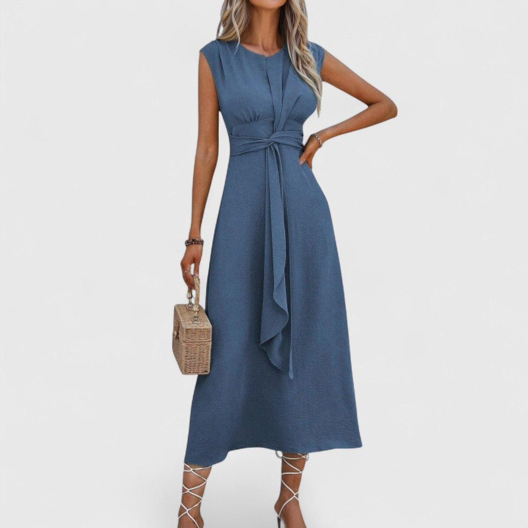Πηνελόπη, το αέρινο μάξι φόρεμα χωρίς μανίκια με κολακευτικό στρογγυλό ντεκολτέ, φέρνει καθημερινή κομψότητα σε κάθε εμφάνιση.