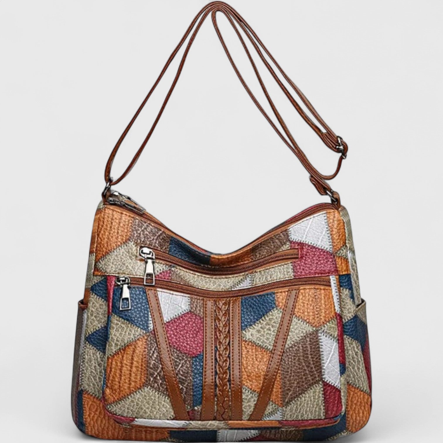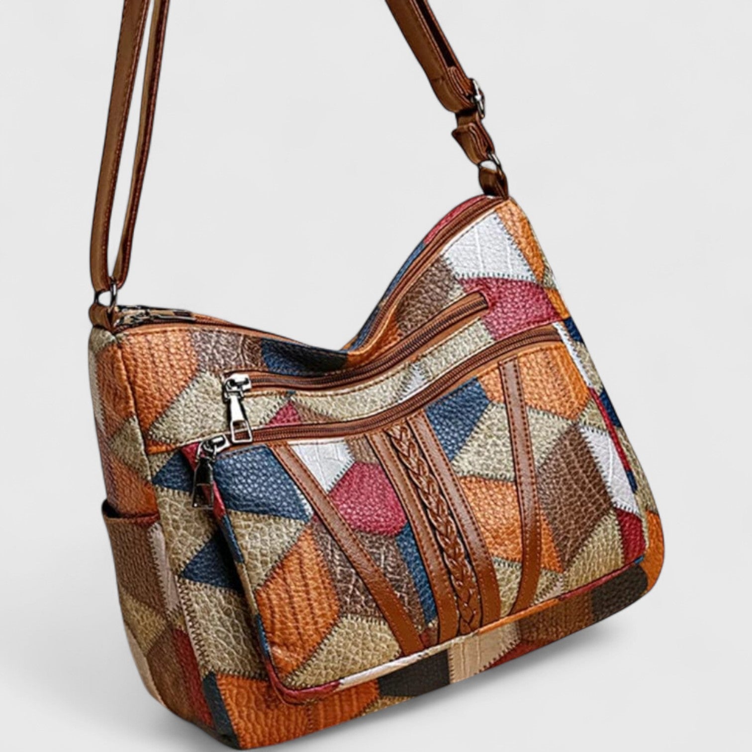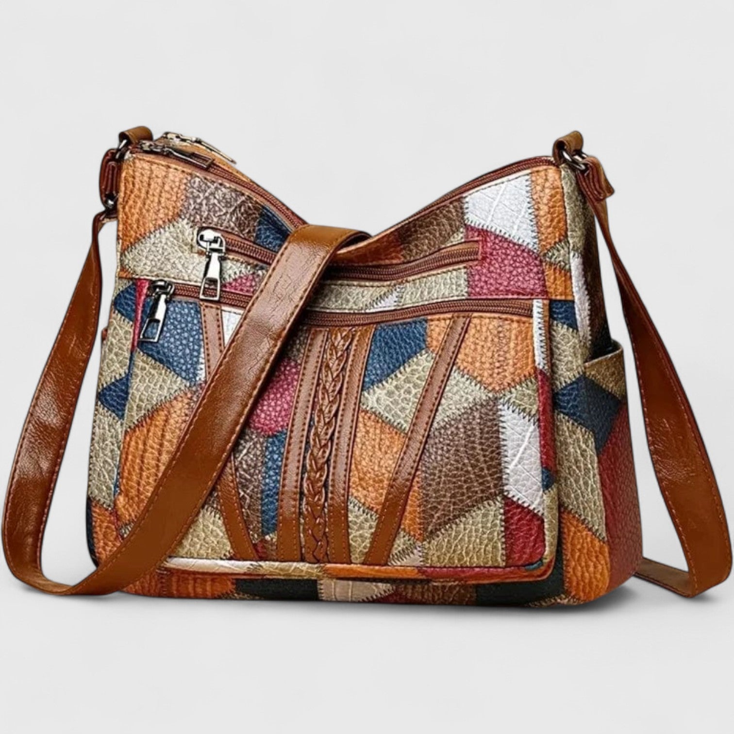 • Πολυεπίπεδο μωσαϊκό σχέδιο από γνήσιο δέρμα, που συνδυάζει τέχνη και καθημερινή χρησιμότητα.